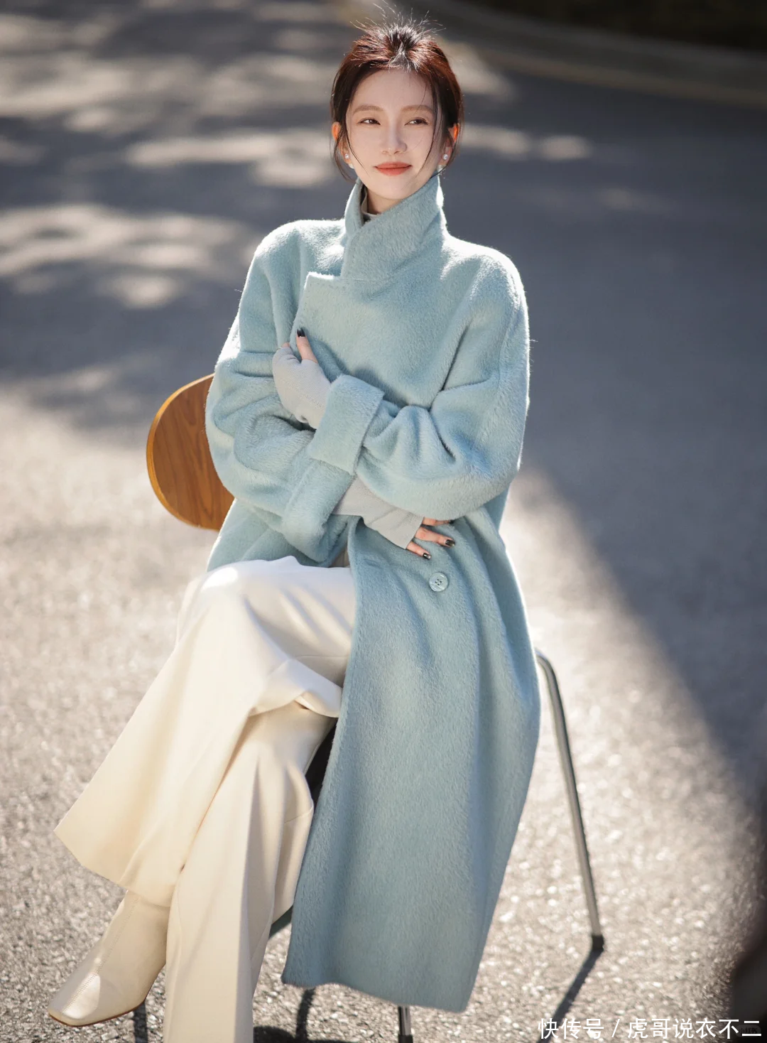 浅蓝色、浅绿色或是米白色等柔和的亮色系,不仅能够打破冬日的沉闷,还能为穿着者增添一份清新与活力。亮色大衣搭配深色或半透明的半身裙,能够形成鲜明的色彩对比,既突出了大衣的亮点,又平衡了整体造型的轻重感。在配饰方面,选择与大衣色彩相呼应的围巾、手套或是包包,能够让整体造型更加精致和谐。